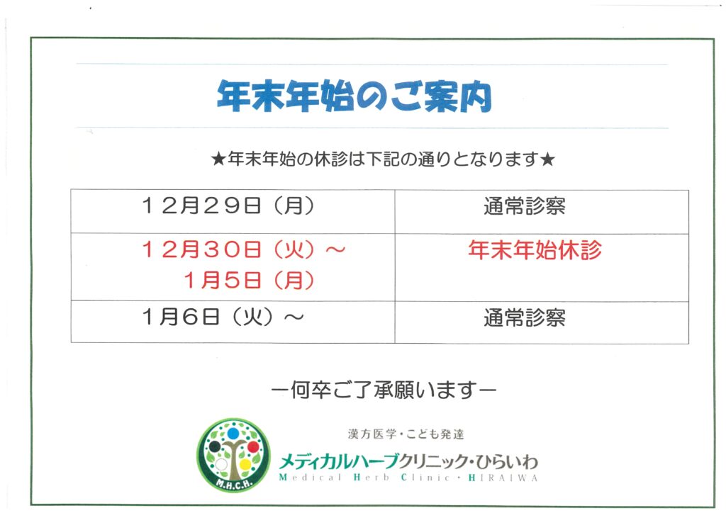 - 2023.11.08年末年始の休診のお知らせ
